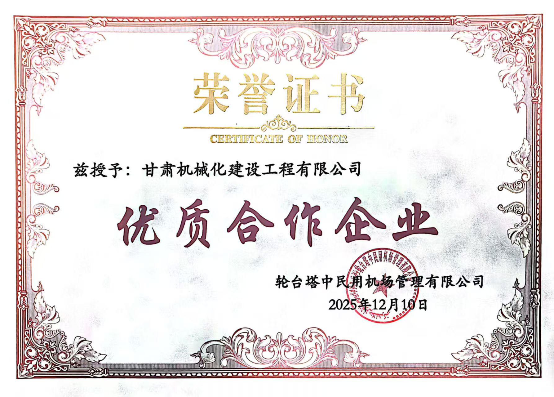新疆輪臺(tái)機(jī)場(chǎng)項(xiàng)目?jī)?yōu)秀合作企業(yè)